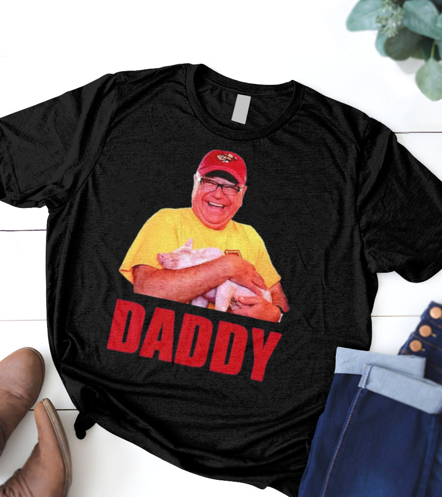DADDY Hugging Pig Tim Walz Cap Shirt made from 100% pre-shrunk ring-spun cotton, unisex regular fit based on U.S. standard sizing. The shirt is designed, cut, sewn, and printed in the United States. Available in sizes S-5XL.