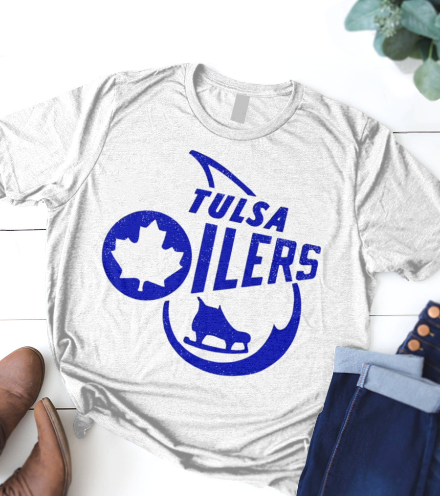 Tulsa Oilers 1982 Maple Leaf Ice Skate Shirt made from 100% pre-shrunk ring-spun cotton, unisex regular fit based on U.S. standard sizing. The shirt is designed, cut, sewn, and printed in the United States. Available in sizes S-5XL.