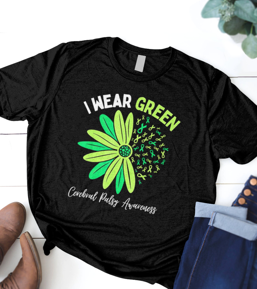 I Wear Green Cerebral Palsy Awareness Flower Ribbons T-Shirt
