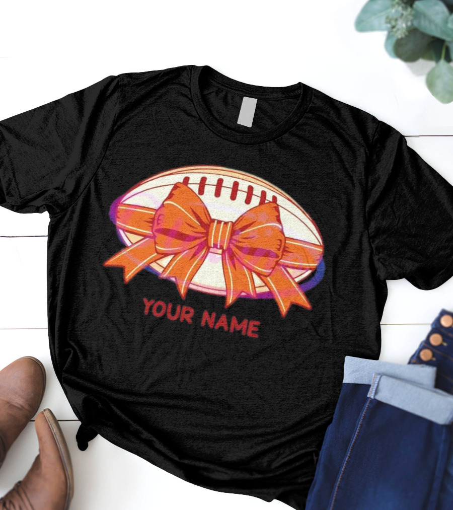 Your Name Coquette Football Bow T-Shirt