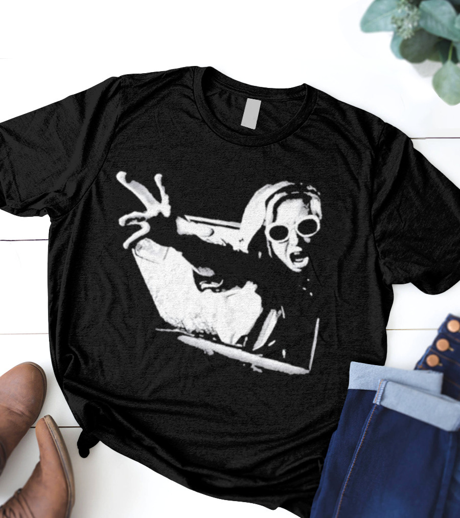 Cuckoo The Hooded Woman Reaching in Sunglasses Shirt made from 100% pre-shrunk ring-spun cotton, unisex regular fit based on U.S. standard sizing. The shirt is designed, cut, sewn, and printed in the United States. Available in sizes S-5XL.