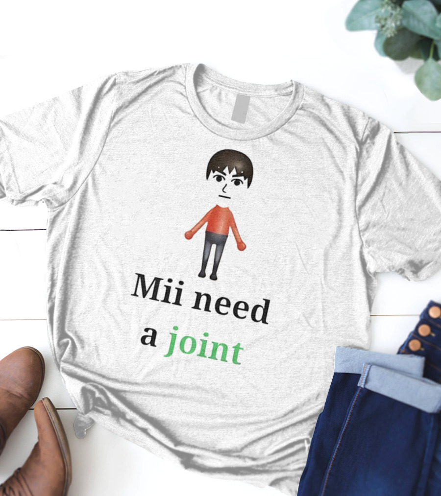 Mii Need a Joint Nintendo Shirt made from 100% pre-shrunk ring-spun cotton, unisex regular fit based on U.S. standard sizing. The shirt is designed, cut, sewn, and printed in the United States. Available in sizes S-5XL.