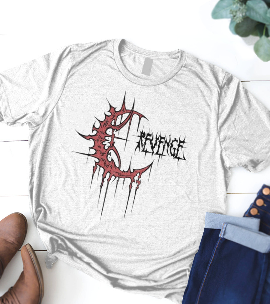 Revenge Crescent Dripping Blood Shirt made from 100% pre-shrunk ring-spun cotton, unisex regular fit based on U.S. standard sizing. The shirt is designed, cut, sewn, and printed in the United States. Available in sizes S-5XL.