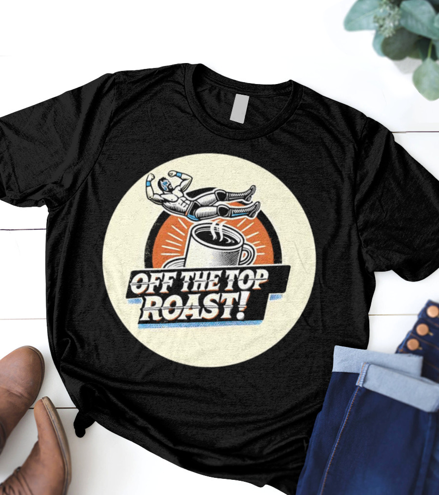 Off the Top Roast Coffee Wrestler Shirt made from 100% pre-shrunk ring-spun cotton, unisex regular fit based on U.S. standard sizing. The shirt is designed, cut, sewn, and printed in the United States. Available in sizes S-5XL.