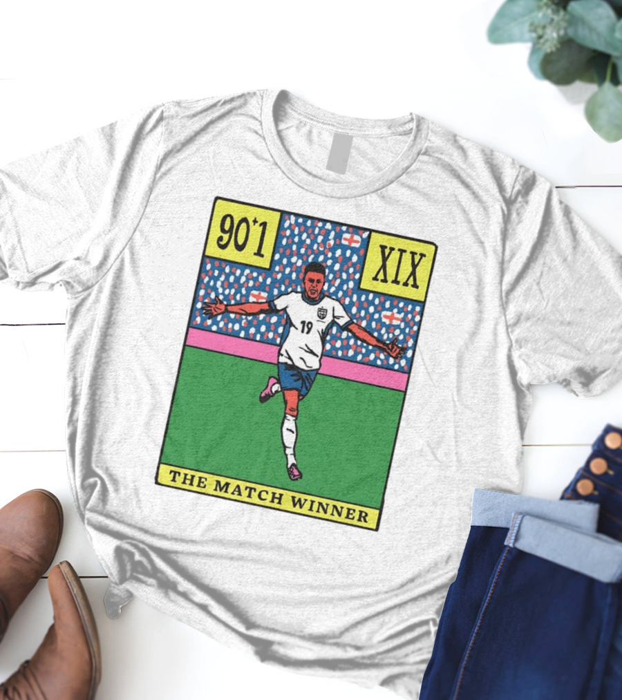 England Football Team Player 19 The Match Winner 90+1 XIX Shirt made from 100% pre-shrunk ring-spun cotton, unisex regular fit based on U.S. standard sizing. The shirt is designed, cut, sewn, and printed in the United States. Available in sizes S-5XL.