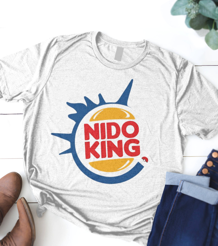 Nido King Burger King Shirt made from 100% pre-shrunk ring-spun cotton, unisex regular fit based on U.S. standard sizing. The shirt is designed, cut, sewn, and printed in the United States. Available in sizes S-5XL.