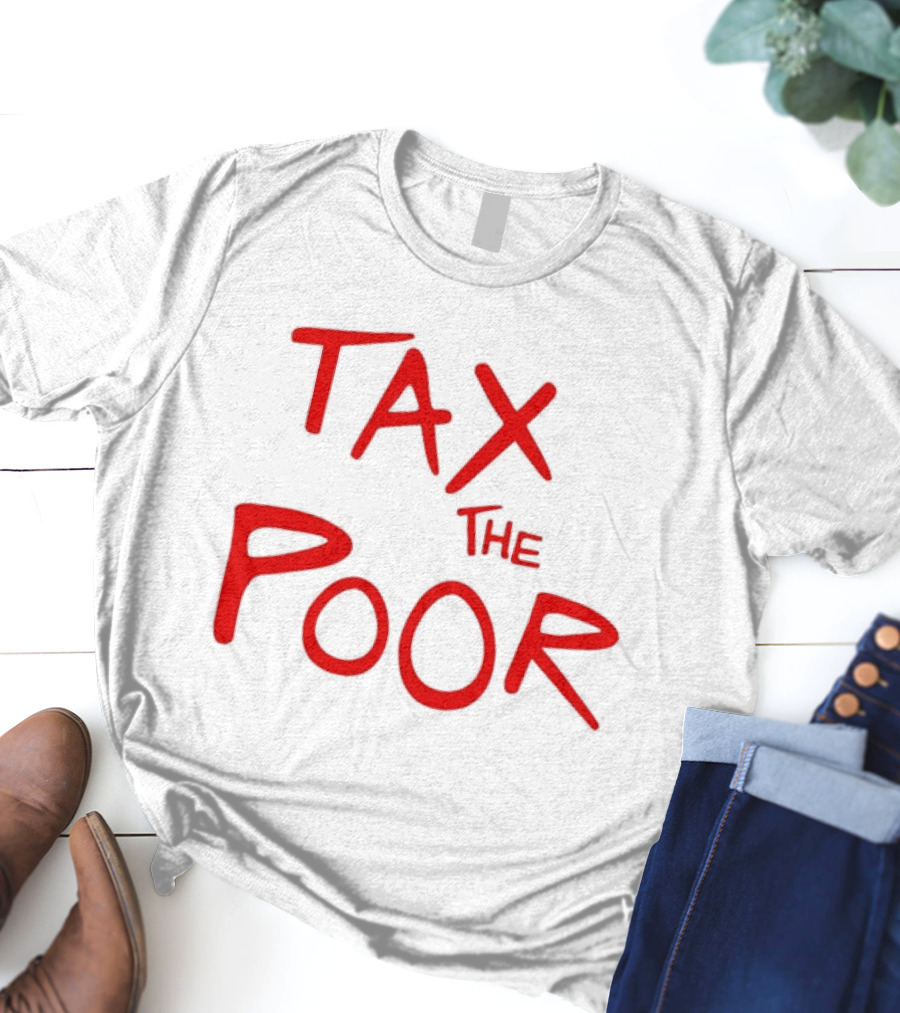 Tax The Poor Dark Humor Satirical Shirt made from 100% pre-shrunk ring-spun cotton, unisex regular fit based on U.S. standard sizing. The shirt is designed, cut, sewn, and printed in the United States. Available in sizes S-5XL.