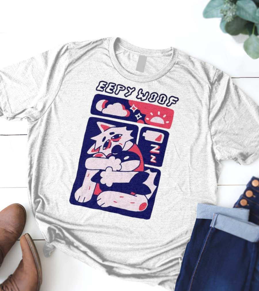 EEP Woof Zz Cloud Sun Shirt made from 100% pre-shrunk ring-spun cotton, unisex regular fit based on U.S. standard sizing. The shirt is designed, cut, sewn, and printed in the United States. Available in sizes S-5XL.