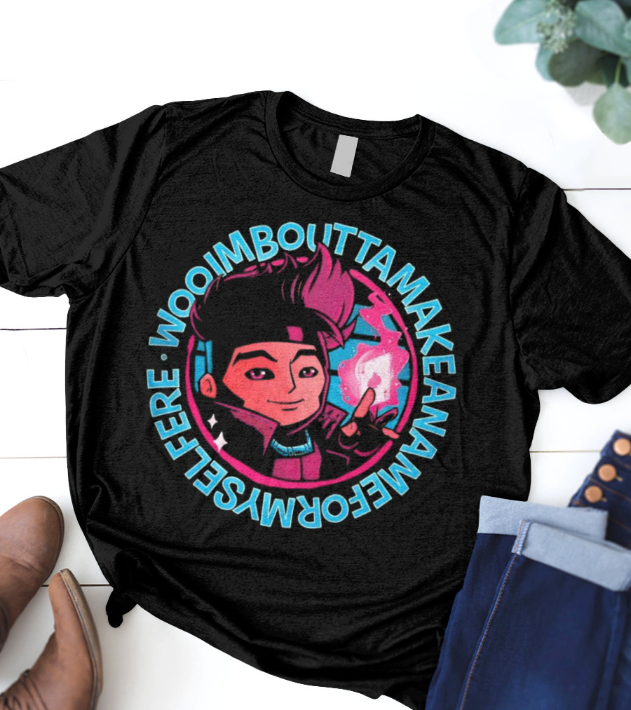 Woo I'm Boutta Make a Name for Myself Gambit Shirt made from 100% pre-shrunk ring-spun cotton, unisex regular fit based on U.S. standard sizing. The shirt is designed, cut, sewn, and printed in the United States. Available in sizes S-5XL.