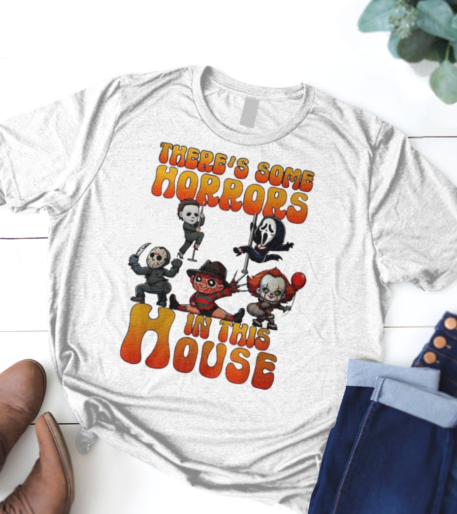 There's Some Horrors In This House Chibi Horror Movie Characters T-Shirt