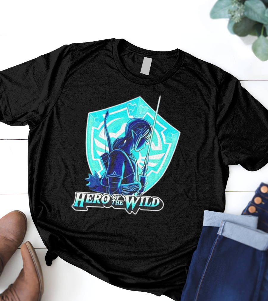 Hero of the Wild Legend of Zelda Link Blue Sword and Shield Shirt made from 100% pre-shrunk ring-spun cotton, unisex regular fit based on U.S. standard sizing. The shirt is designed, cut, sewn, and printed in the United States. Available in sizes S-5XL.