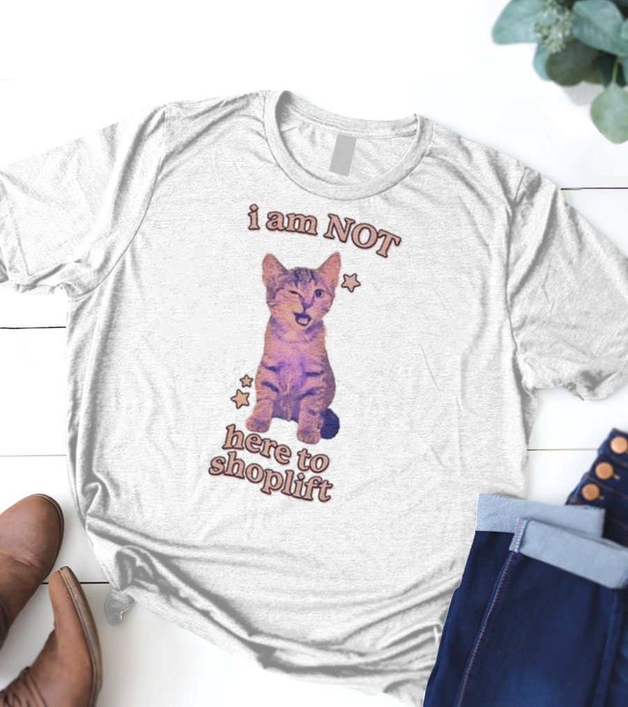 Gotfunny I Am Not Here To Shoplift Winking Cat With Stars T-Shirt