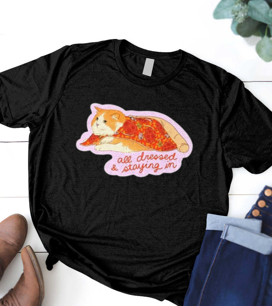 All Dressed And Staying In Cat Pizza Blanket T-Shirt