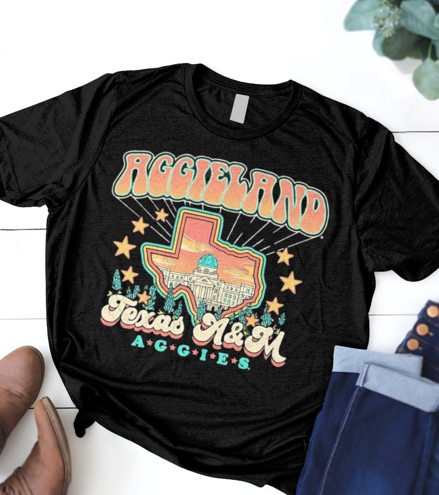Aggieland Texas A&M Aggies Fiesta With Texas Outline And Stars T-Shirt