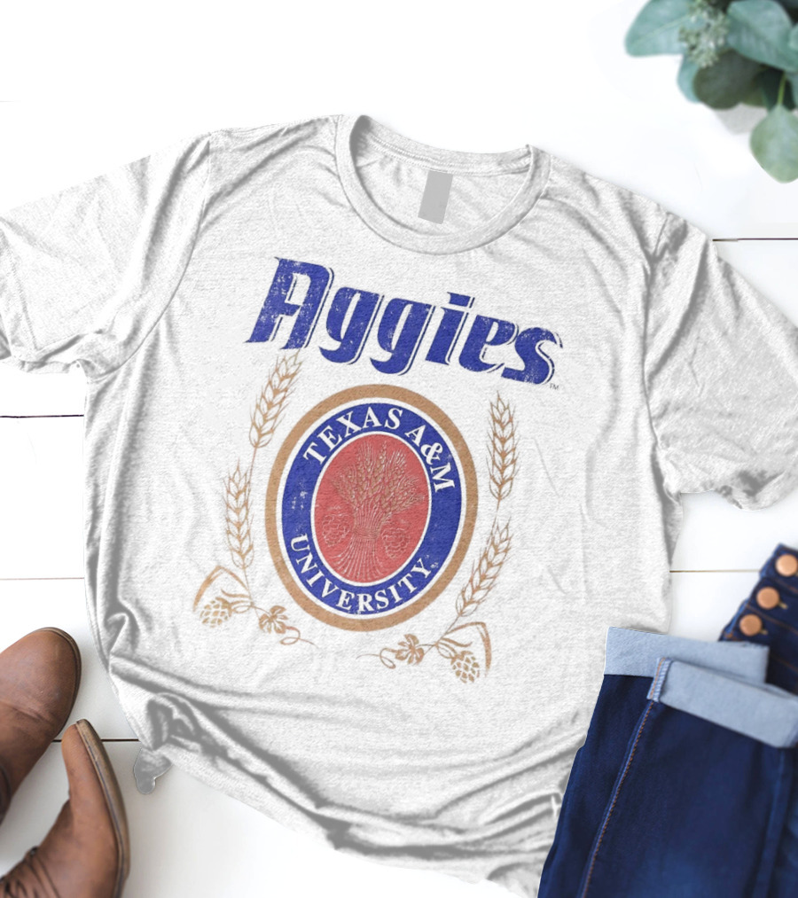 Texas A&M Aggies University Shirt made from 100% pre-shrunk ring-spun cotton, unisex regular fit based on U.S. standard sizing. The shirt is designed, cut, sewn, and printed in the United States. Available in sizes S-5XL.