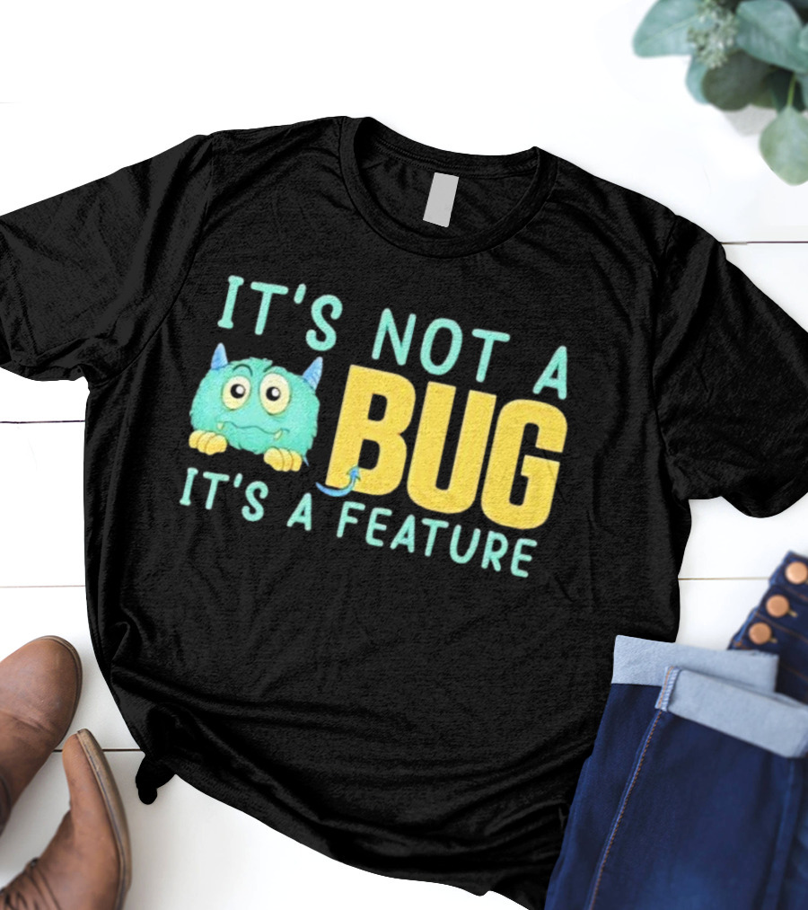 IT'S NOT A BUG IT'S A FEATURE Monster Shirt made from 100% pre-shrunk ring-spun cotton, unisex regular fit based on U.S. standard sizing. The shirt is designed, cut, sewn, and printed in the United States. Available in sizes S-5XL.