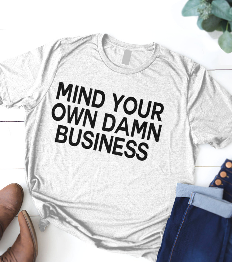 Mind Your Own Damn Business Jamie Bonkiewicz Shirt made from 100% pre-shrunk ring-spun cotton, unisex regular fit based on U.S. standard sizing. The shirt is designed, cut, sewn, and printed in the United States. Available in sizes S-5XL.
