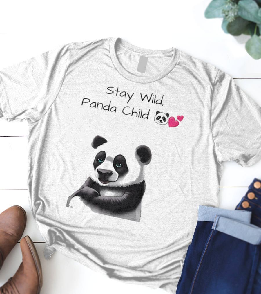 Stay Wild Panda Child Cute Emoji Panda Hearts Shirt made from 100% pre-shrunk ring-spun cotton, unisex regular fit based on U.S. standard sizing. The shirt is designed, cut, sewn, and printed in the United States. Available in sizes S-5XL.