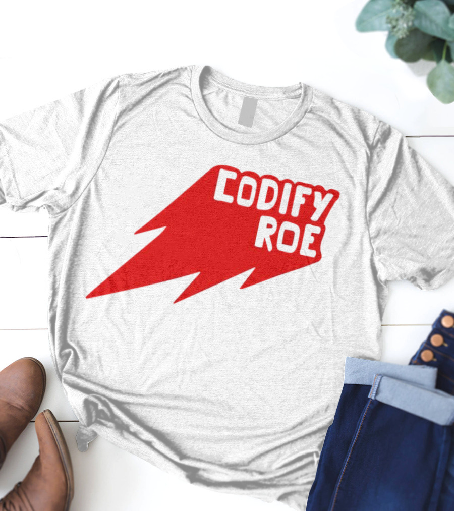 Codify Roe Red Lightning Bolt Shirt made from 100% pre-shrunk ring-spun cotton, unisex regular fit based on U.S. standard sizing. The shirt is designed, cut, sewn, and printed in the United States. Available in sizes S-5XL.