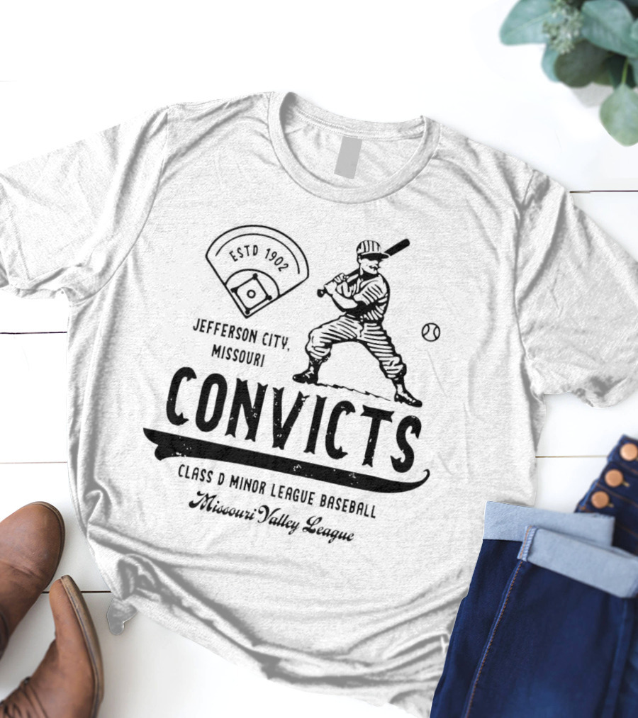 Jefferson City Convicts Missouri Valley League Baseball Estd 1902 T-Shirt