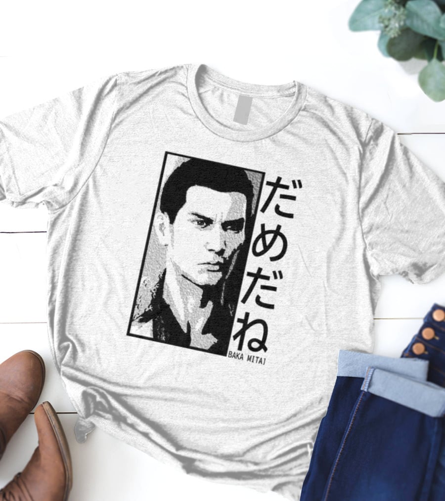 Baka Mitai Yakuza Kiryu Kazuma Dame Da Ne Gaming Shirt made from 100% pre-shrunk ring-spun cotton, unisex regular fit based on U.S. standard sizing. The shirt is designed, cut, sewn, and printed in the United States. Available in sizes S-5XL.