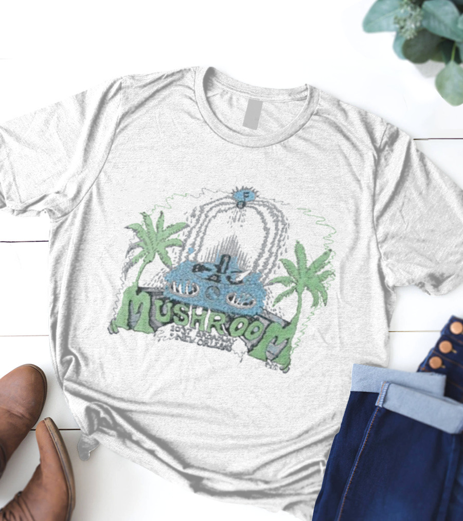 Palm Trees and Tape Deck Mushroom 1976 Shirt made from 100% pre-shrunk ring-spun cotton, unisex regular fit based on U.S. standard sizing. The shirt is designed, cut, sewn, and printed in the United States. Available in sizes S-5XL.
