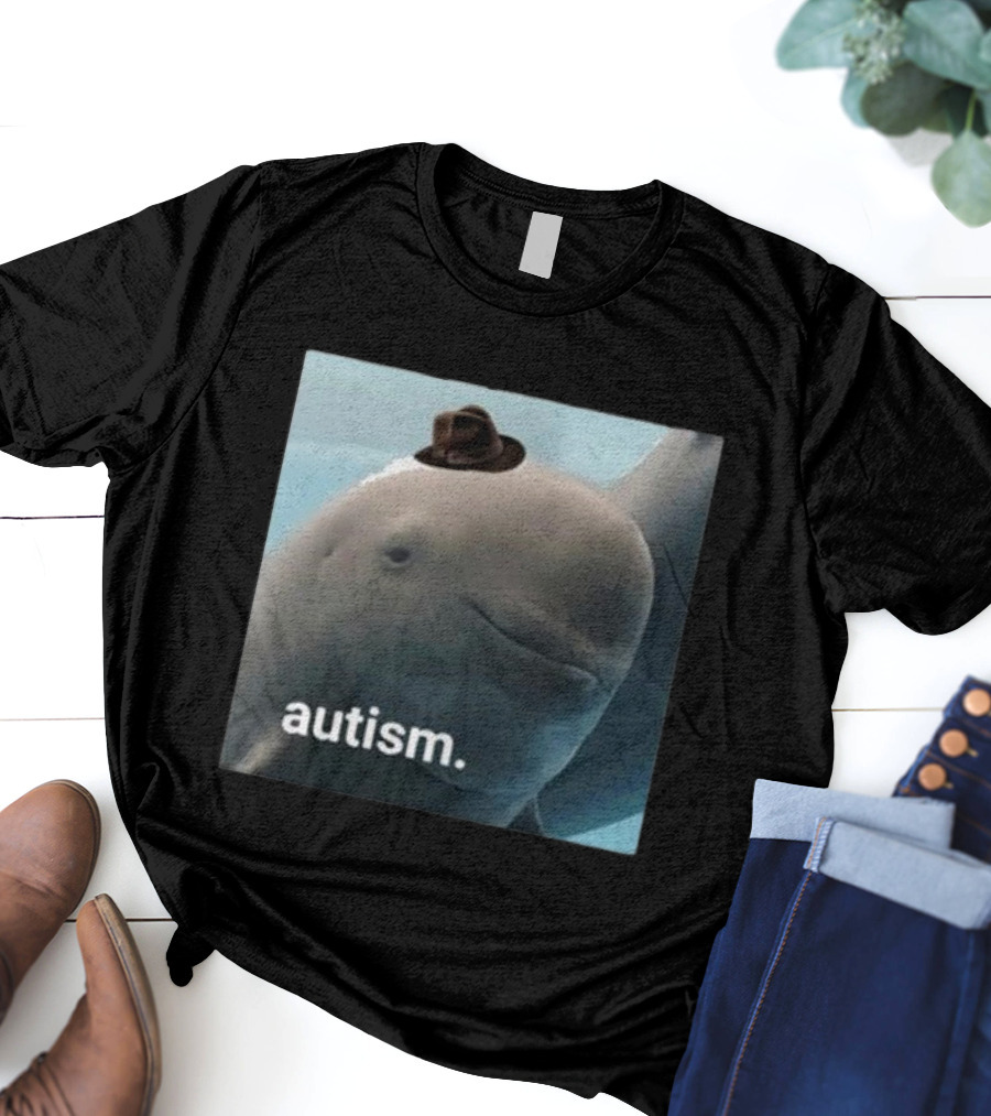 Dolphin Wearing Hat Autism Shirt made from 100% pre-shrunk ring-spun cotton, unisex regular fit based on U.S. standard sizing. The shirt is designed, cut, sewn, and printed in the United States. Available in sizes S-5XL.