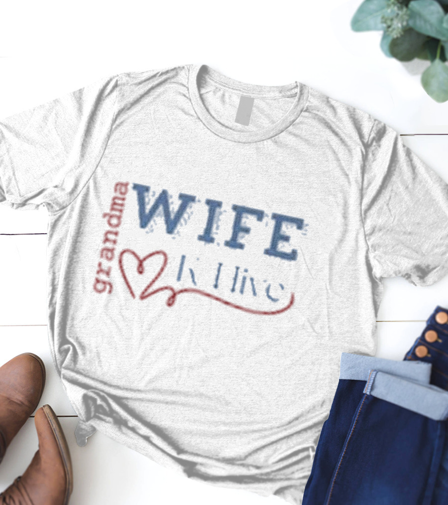 Grandma Wife Khive Heart Shirt made from 100% pre-shrunk ring-spun cotton, unisex regular fit based on U.S. standard sizing. The shirt is designed, cut, sewn, and printed in the United States. Available in sizes S-5XL.