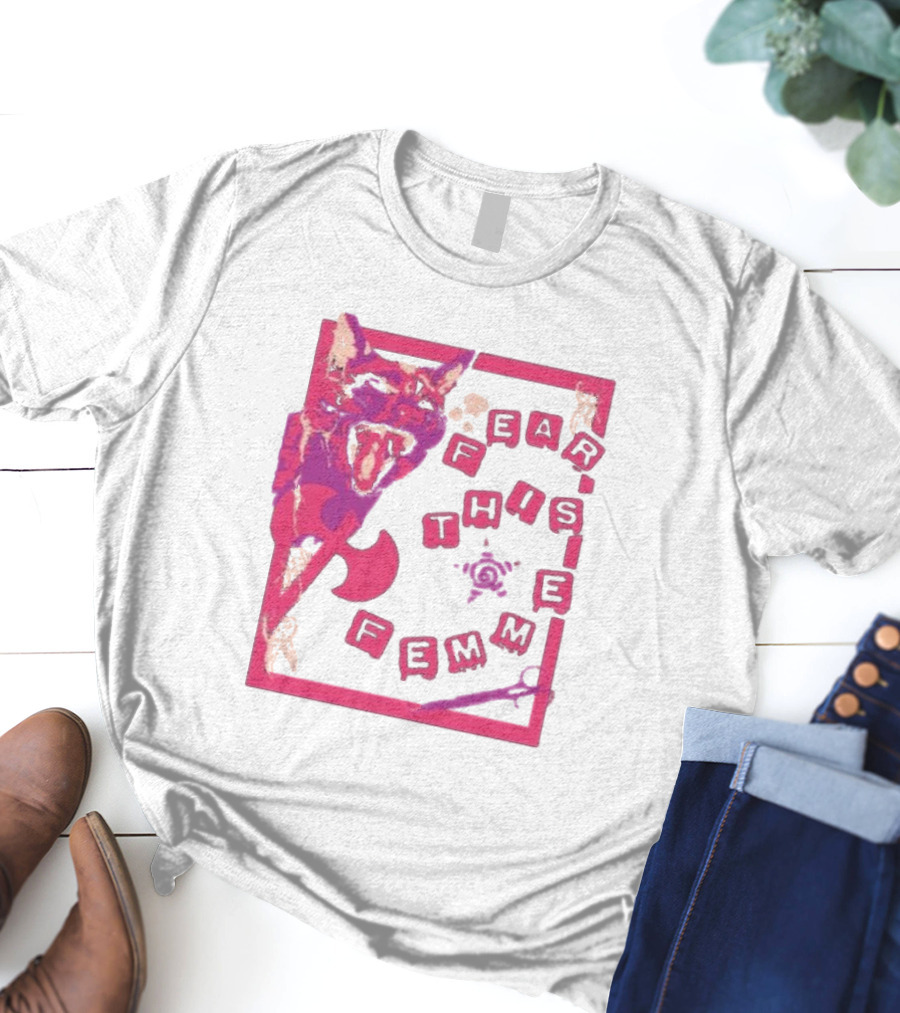 Fear This Femme Cat and Axe Retro Typography Pink Acid Wash Shirt made from 100% pre-shrunk ring-spun cotton, unisex regular fit based on U.S. standard sizing. The shirt is designed, cut, sewn, and printed in the United States. Available in sizes S-5XL.