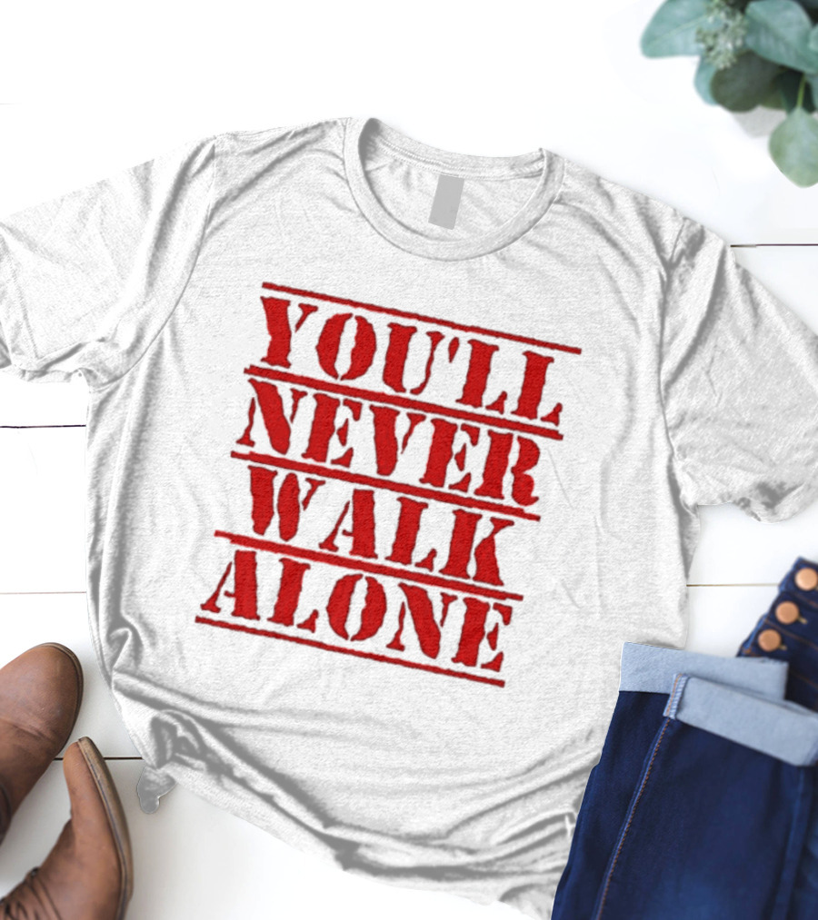 You'll Never Walk Alone Shirt made from 100% pre-shrunk ring-spun cotton, unisex regular fit based on U.S. standard sizing. The shirt is designed, cut, sewn, and printed in the United States. Available in sizes S-5XL.
