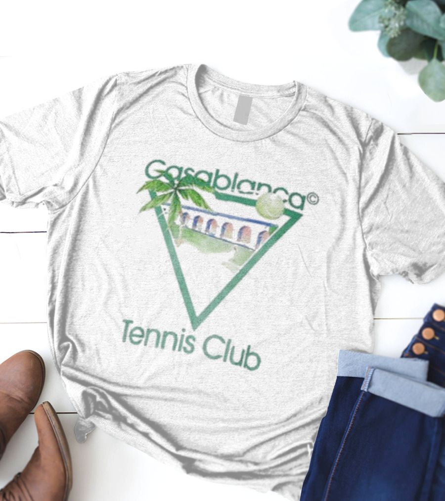 Casablanca Tennis Club Tropical Logo Triangle Shirt made from 100% pre-shrunk ring-spun cotton, unisex regular fit based on U.S. standard sizing. The shirt is designed, cut, sewn, and printed in the United States. Available in sizes S-5XL.