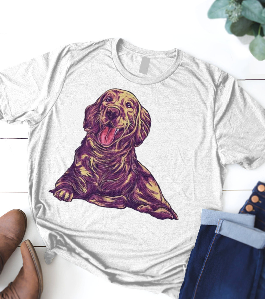 Golden Retriever Cute Dog Shirt made from 100% pre-shrunk ring-spun cotton, unisex regular fit based on U.S. standard sizing. The shirt is designed, cut, sewn, and printed in the United States. Available in sizes S-5XL.