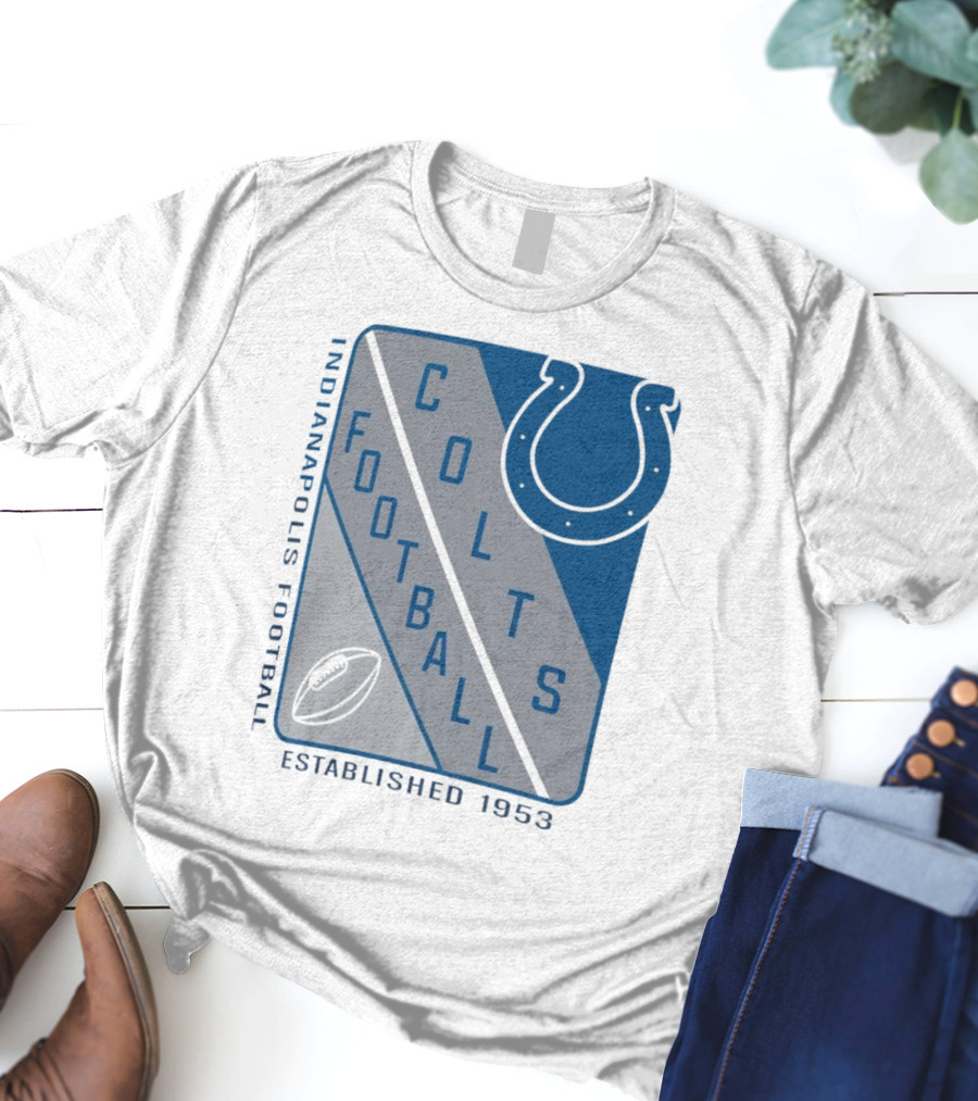 Indianapolis Colts Football Shield Established 1953 Shirt made from 100% pre-shrunk ring-spun cotton, unisex regular fit based on U.S. standard sizing. The shirt is designed, cut, sewn, and printed in the United States. Available in sizes S-5XL.