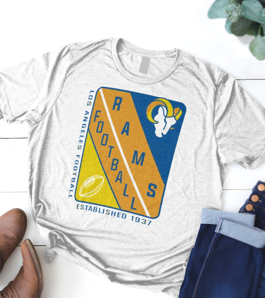 Los Angeles Rams Football Established 1937 Shirt made from 100% pre-shrunk ring-spun cotton, unisex regular fit based on U.S. standard sizing. The shirt is designed, cut, sewn, and printed in the United States. Available in sizes S-5XL.