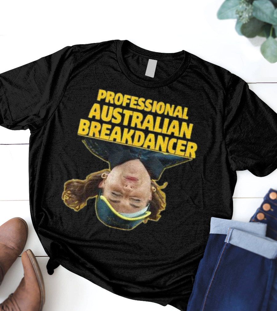 PROFESSIONAL AUSTRALIAN BREAKDANCER UPSIDE-DOWN Shirt made from 100% pre-shrunk ring-spun cotton, unisex regular fit based on U.S. standard sizing. The shirt is designed, cut, sewn, and printed in the United States. Available in sizes S-5XL.