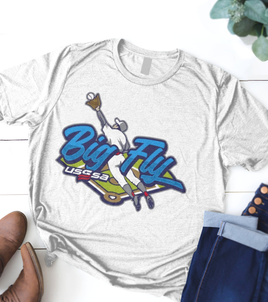 USSSA Mississippi Baseball Big Fly Shirt made from 100% pre-shrunk ring-spun cotton, unisex regular fit based on U.S. standard sizing. The shirt is designed, cut, sewn, and printed in the United States. Available in sizes S-5XL.