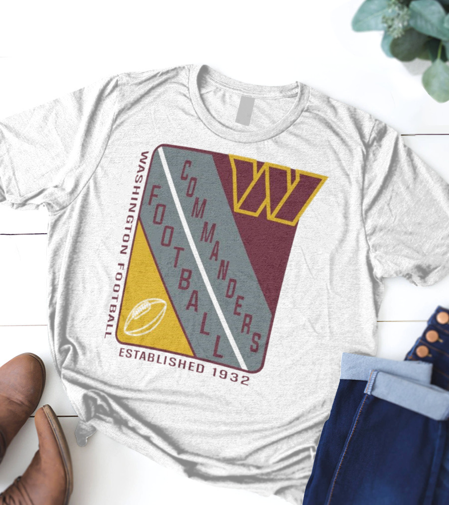 Washington Football Commanders Shield Football Established 1932 Shirt made from 100% pre-shrunk ring-spun cotton, unisex regular fit based on U.S. standard sizing. The shirt is designed, cut, sewn, and printed in the United States. Available in sizes S-5XL.