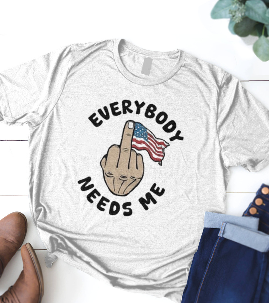 Everybody Needs Me Middle Finger American Flag Gesture T-Shirt