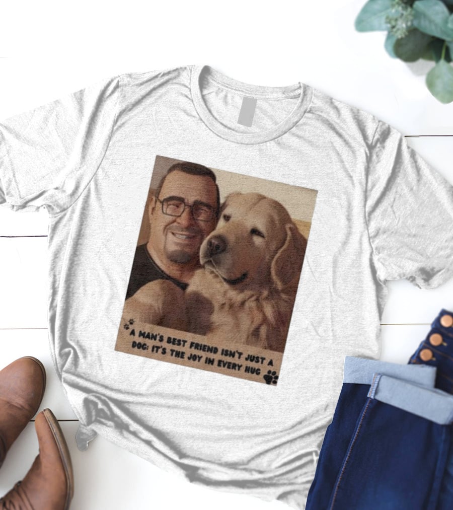 Fernanda Davis A Man's Best Friend Dog Joy in Every Hug Shirt made from 100% pre-shrunk ring-spun cotton, unisex regular fit based on U.S. standard sizing. The shirt is designed, cut, sewn, and printed in the United States. Available in sizes S-5XL.