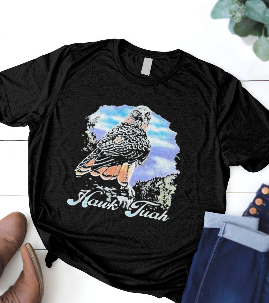 Hawk Tuah Scenic 70s Vintage Style Bird Shirt made from 100% pre-shrunk ring-spun cotton, unisex regular fit based on U.S. standard sizing. The shirt is designed, cut, sewn, and printed in the United States. Available in sizes S-5XL.