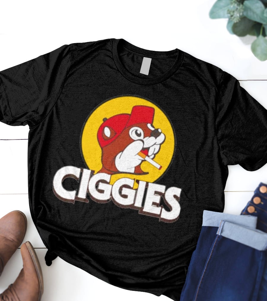 Ciggies Beanie Cap Cartoon Rodent Smoking Shirt made from 100% pre-shrunk ring-spun cotton, unisex regular fit based on U.S. standard sizing. The shirt is designed, cut, sewn, and printed in the United States. Available in sizes S-5XL.