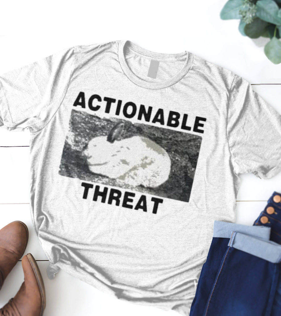 HitsujI Actionable Threat Lamb Shirt made from 100% pre-shrunk ring-spun cotton, unisex regular fit based on U.S. standard sizing. The shirt is designed, cut, sewn, and printed in the United States. Available in sizes S-5XL.