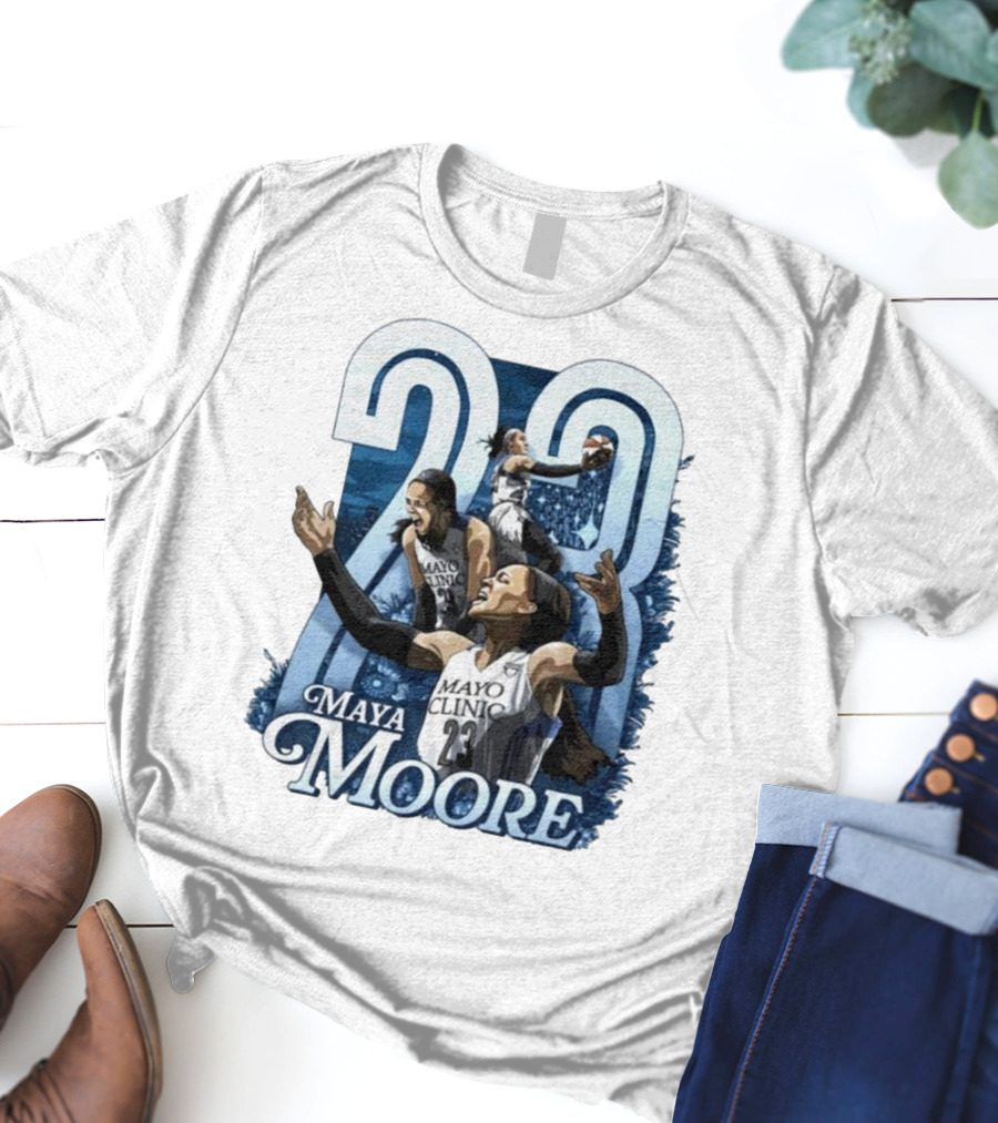 Maya Moore 23 Mayo Clinic Retro Basketball Legend Shirt made from 100% pre-shrunk ring-spun cotton, unisex regular fit based on U.S. standard sizing. The shirt is designed, cut, sewn, and printed in the United States. Available in sizes S-5XL.