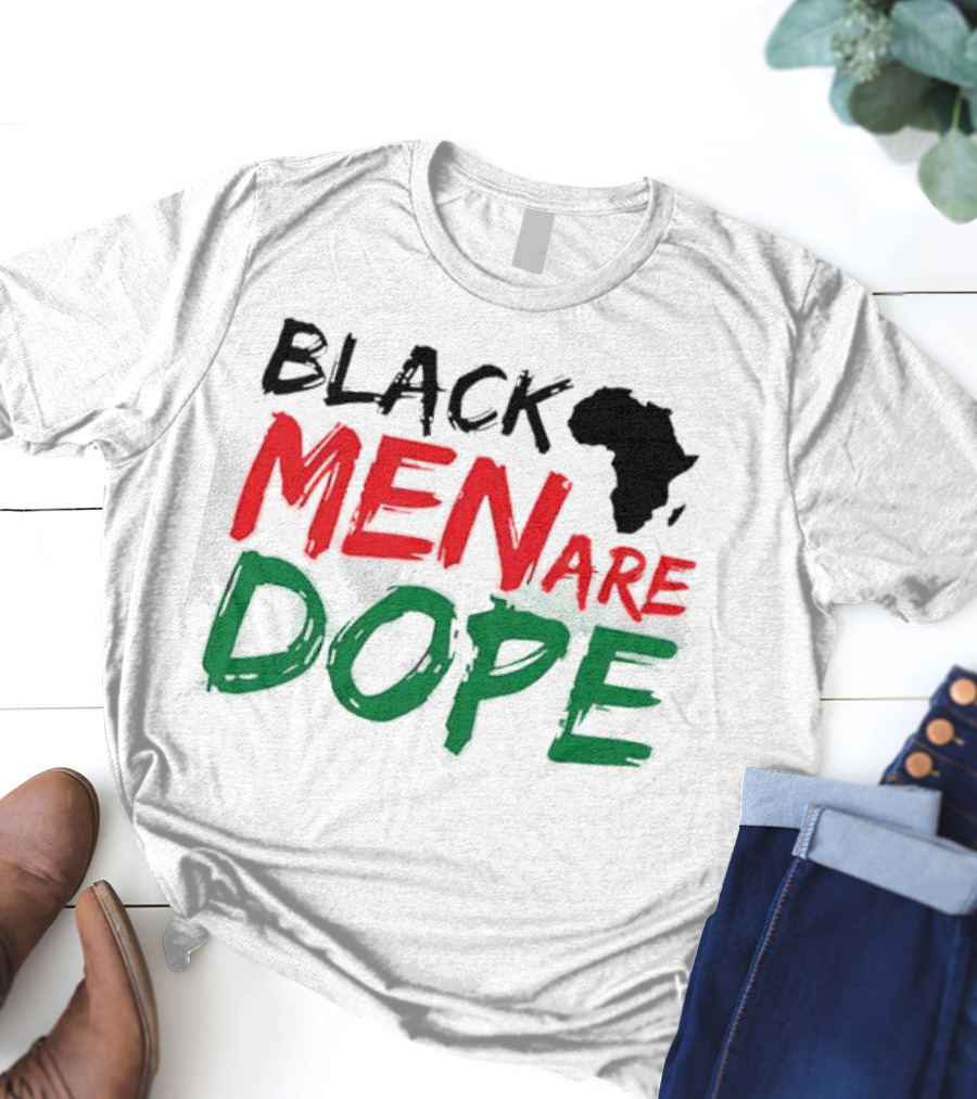 Black Men Are Dope Africa Silhouette Red Green Shirt made from 100% pre-shrunk ring-spun cotton, unisex regular fit based on U.S. standard sizing. The shirt is designed, cut, sewn, and printed in the United States. Available in sizes S-5XL.