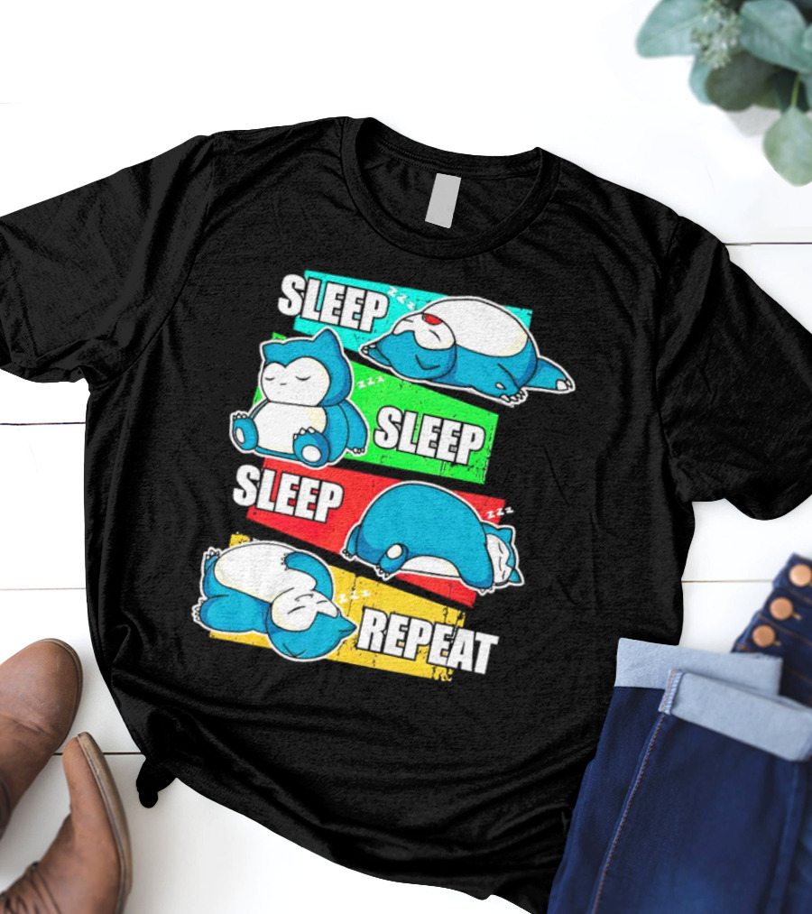 Sleep Sleep Sleep Repeat Snorlax Pokémon Life Shirt made from 100% pre-shrunk ring-spun cotton, unisex regular fit based on U.S. standard sizing. The shirt is designed, cut, sewn, and printed in the United States. Available in sizes S-5XL.