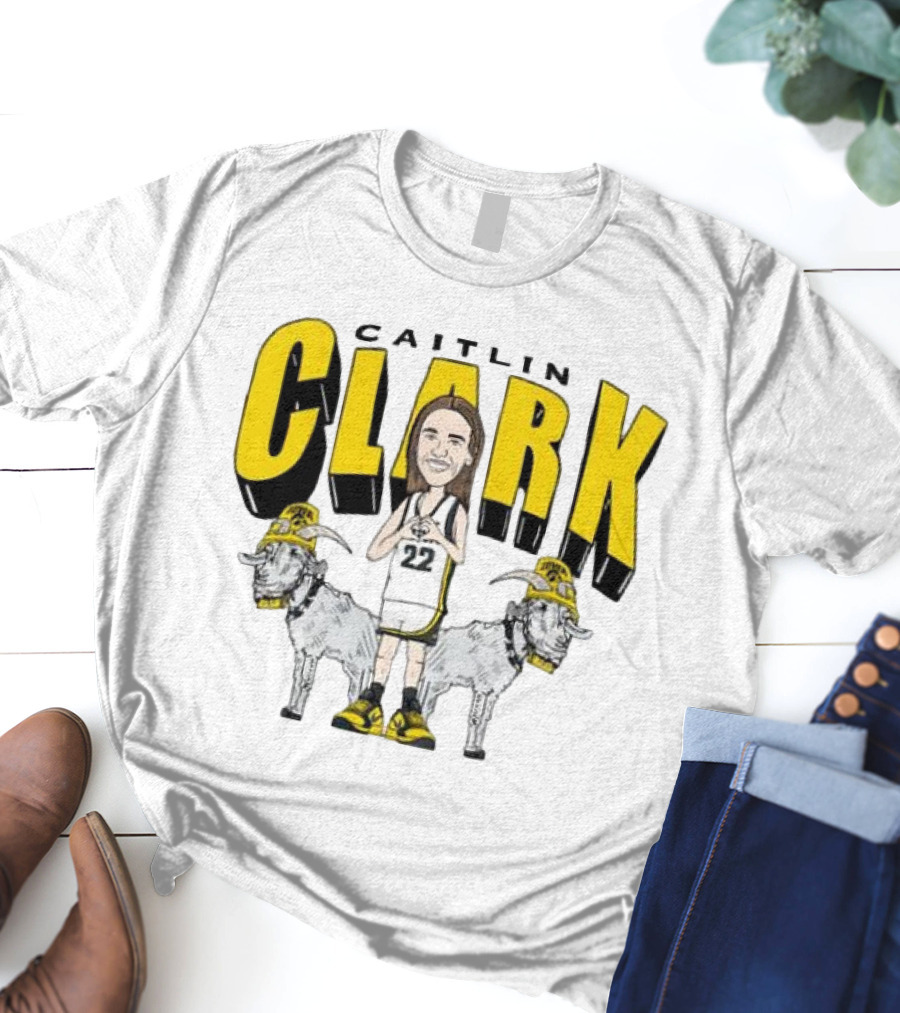 Iowa Hawkeyes Caitlin Clark 22 Caricature with Goats and Heart Hands Shirt made from 100% pre-shrunk ring-spun cotton, unisex regular fit based on U.S. standard sizing. The shirt is designed, cut, sewn, and printed in the United States. Available in sizes S-5XL.