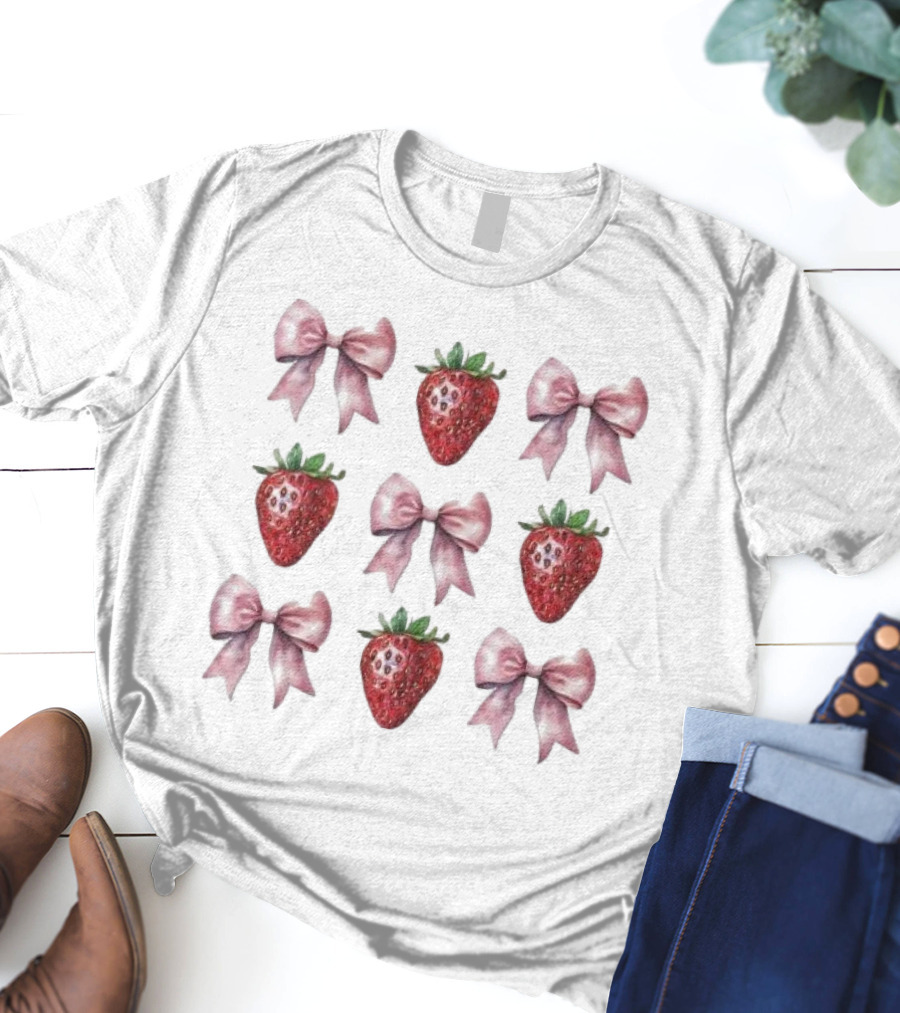 Women’s Summer Strawberries With Pink Bows Coquette T-Shirt