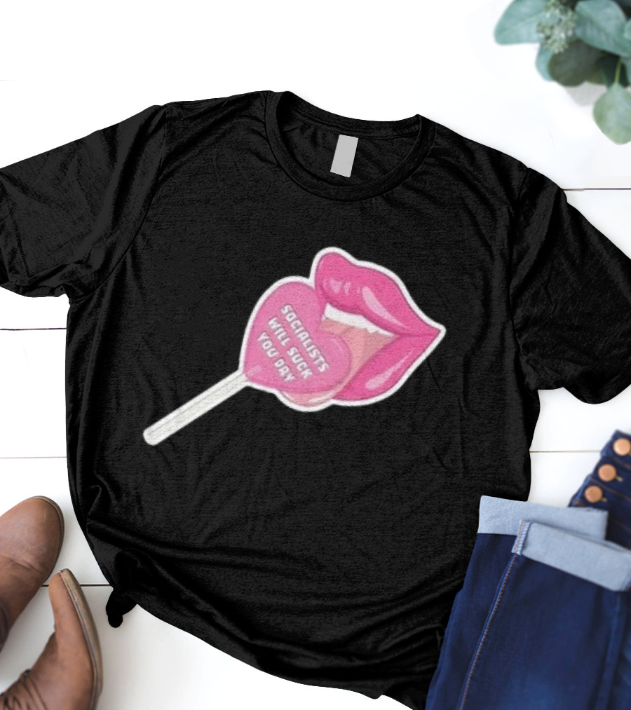 Socialists Will Suck You Dry Pink Lips Lollipop T-Shirt