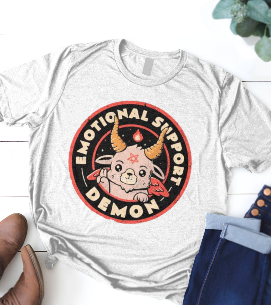 Emotional Support Demon Cute Devil Goat with Wings and Fire Shirt made from 100% pre-shrunk ring-spun cotton, unisex regular fit based on U.S. standard sizing. The shirt is designed, cut, sewn, and printed in the United States. Available in sizes S-5XL.