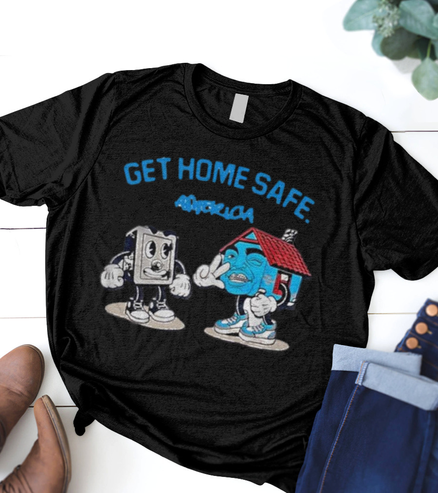 Get Home Safe America Hollyhood Baybay Cartoon House And Block Characters T-Shirt